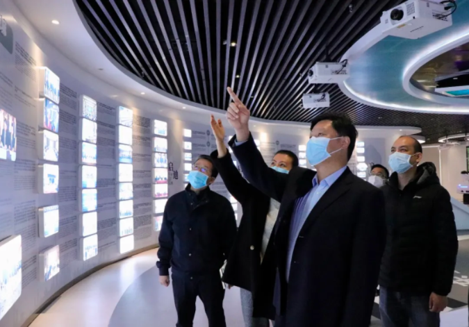 ▲ 陳竑副主任一行參觀(guān)南寧·啟迪東盟創(chuàng )新中心數字展廳