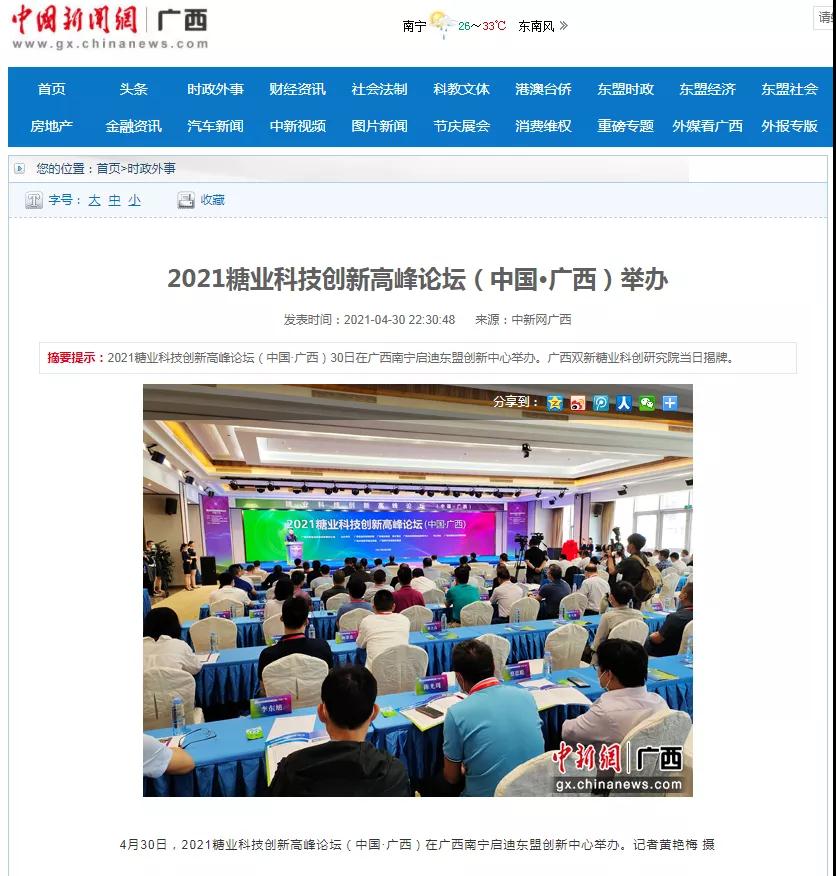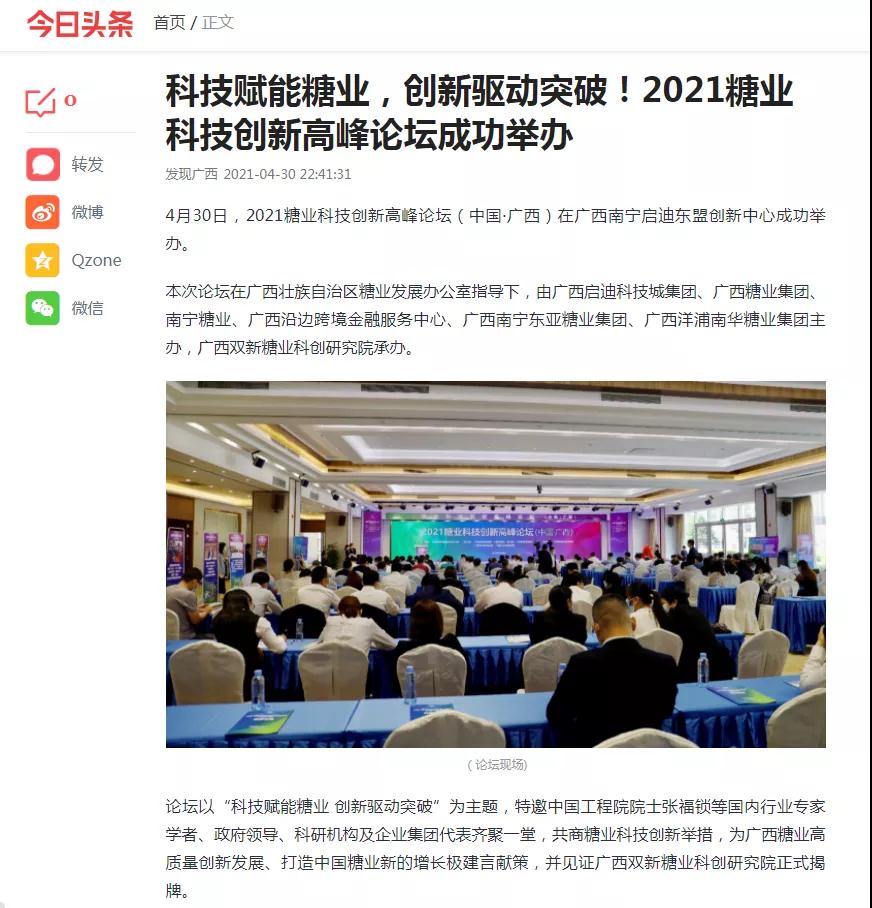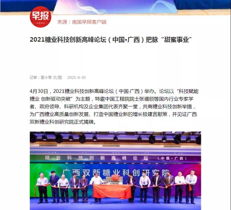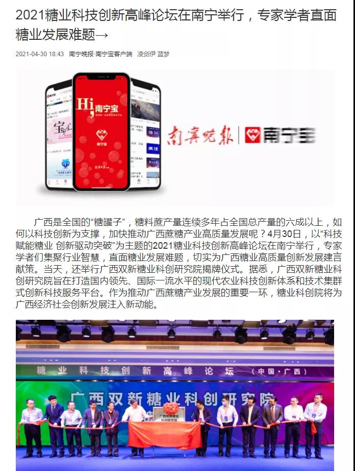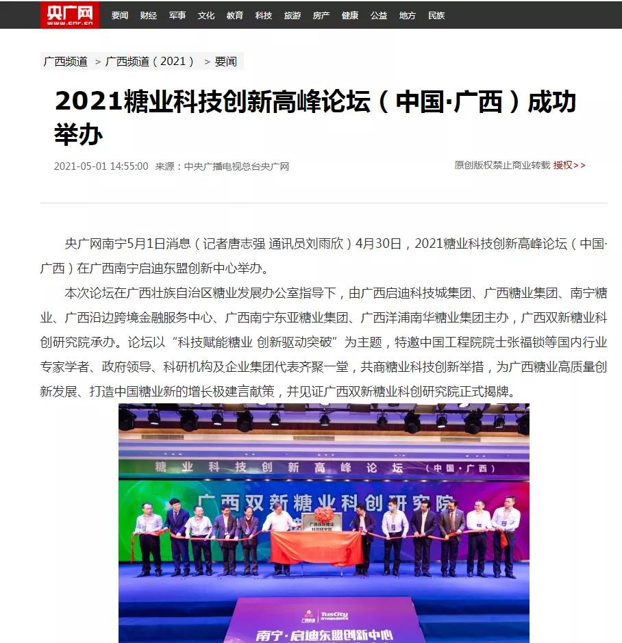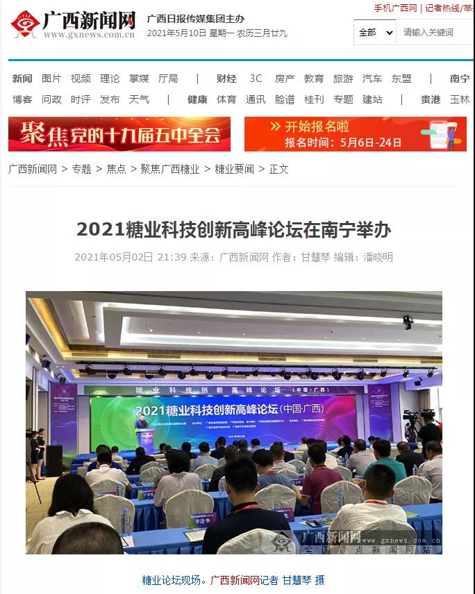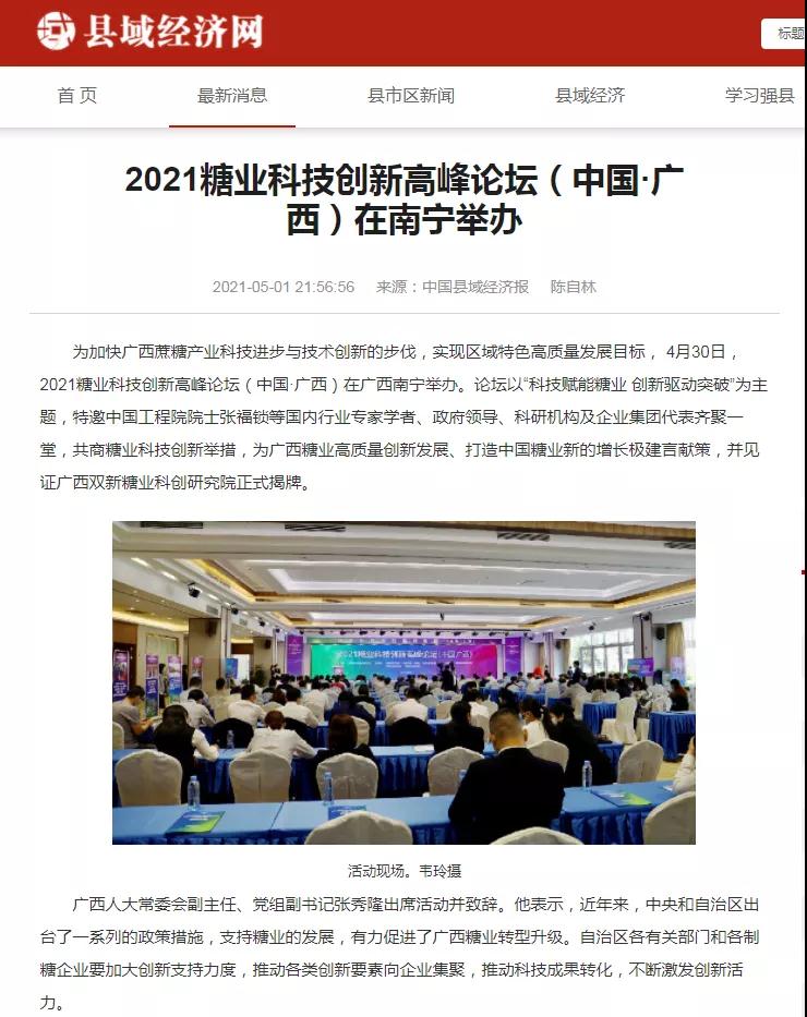 媒體聚焦 | 20多家媒體報道2021糖業(yè)科技創(chuàng )新高峰論壇(中國·廣西)盛況