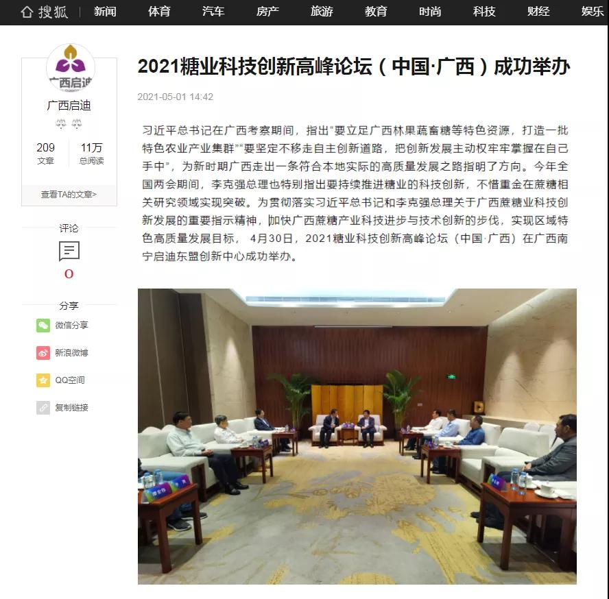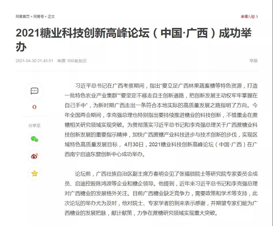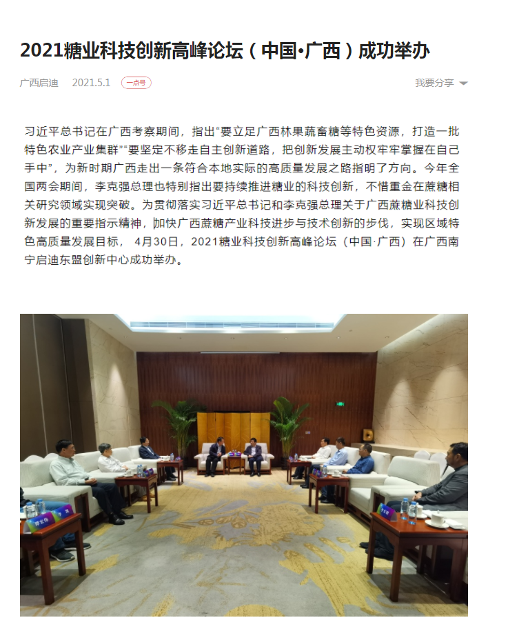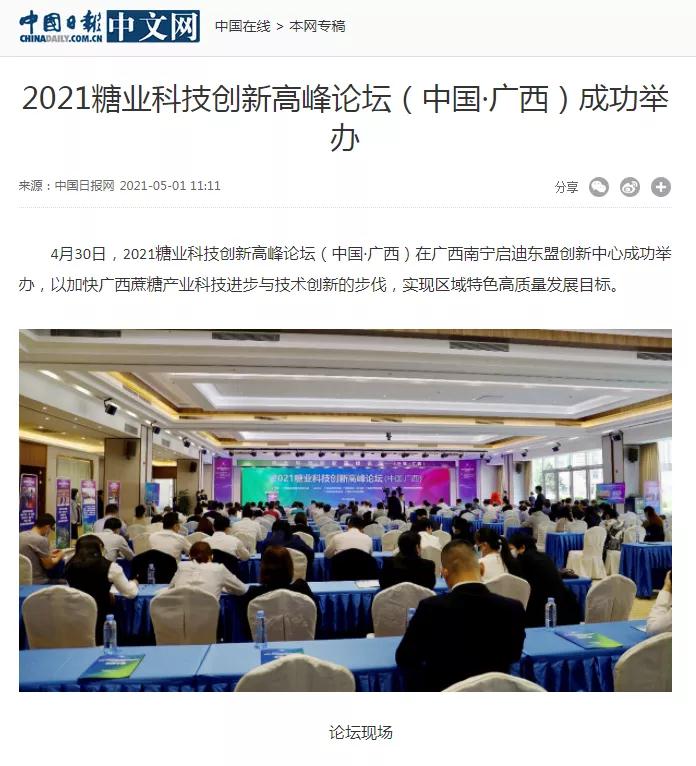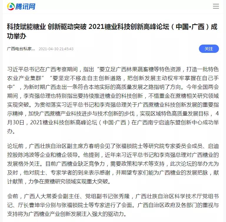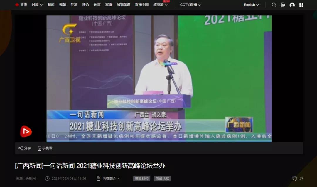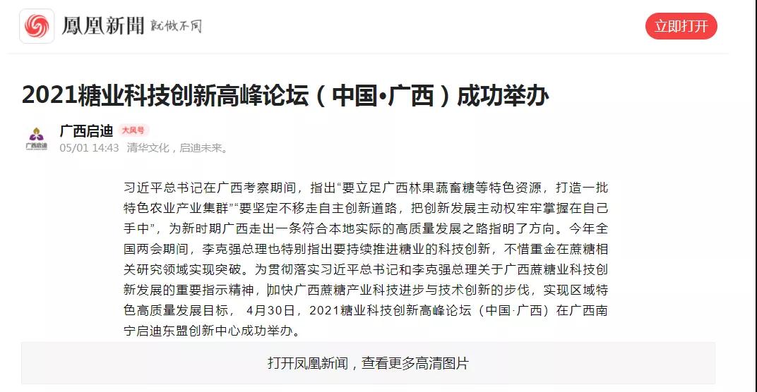 媒體聚焦 | 20多家媒體報道2021糖業(yè)科技創(chuàng )新高峰論壇(中國·廣西)盛況