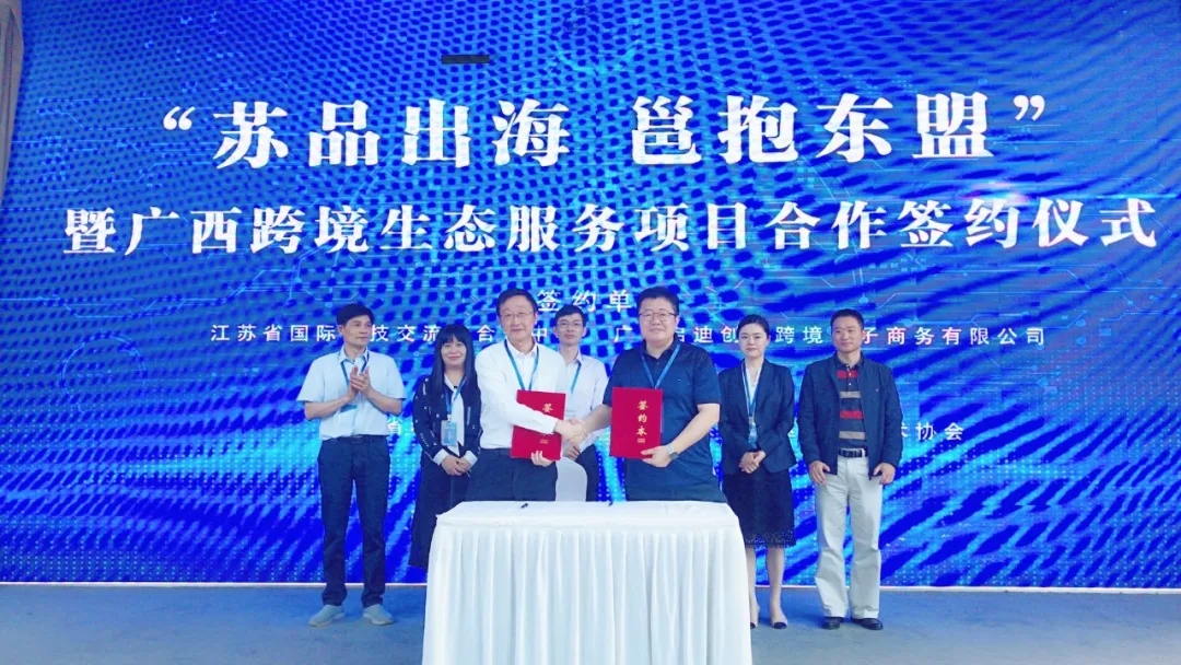 按中國科協(xié)2021年“科創(chuàng )中國”行動(dòng)部署,為進(jìn)一步推動(dòng)“科創(chuàng )中國”試點(diǎn)城市重點(diǎn)產(chǎn)業(yè)企業(yè)需求提供精準服務(wù),5月22日,在廣西壯族自治區科學(xué)技術(shù)協(xié)會(huì )、江蘇省科學(xué)技術(shù)協(xié)會(huì )的指導和支持下,廣西啟迪創(chuàng )新跨境電子商務(wù)有限公司與江蘇省國際科技交流與合作中心(簡(jiǎn)稱(chēng):蘇科國際)在2021年江蘇省“全國科技活動(dòng)周”江蘇科創(chuàng )產(chǎn)品展開(kāi)幕式上共同簽署合作協(xié)議,雙方將共同助力江蘇企業(yè)拓展海外市場(chǎng)。