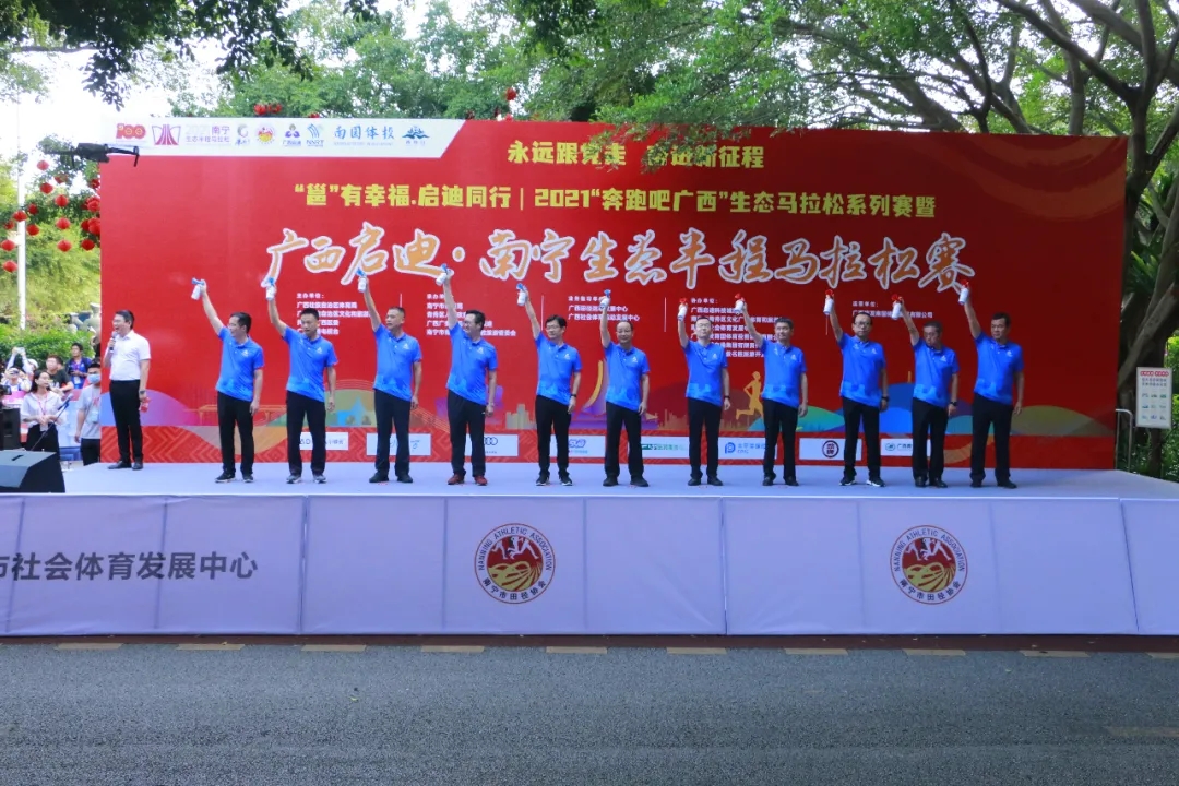 本次賽事嚴格落實(shí)自治區、市各級疫情防控工作要求,由廣西壯族自治區體育局、廣西壯族自治區文化和旅游廳、共青團廣西區委、廣西廣播電視臺主辦,南寧市體育局、廣西南寧青秀山風(fēng)景名勝旅游區管委會(huì )、廣西旅游發(fā)展集團有限公司、廣西廣播電視臺新聞頻道承辦,廣西啟迪科技城集團、南寧市社會(huì )體育發(fā)展中心、廣西旅發(fā)南國體育投資集團有限公司、南寧市軌道交通集團有限責任公司、南寧青秀山風(fēng)景名勝旅游開(kāi)發(fā)有限責任公司協(xié)辦,廣西旅發(fā)南國體育賽事有限公司運營(yíng)。啟迪控股總裁助理、廣西啟迪科技城集團總裁宋鐵農出席開(kāi)賽儀式,為千名跑友加油助威,共同見(jiàn)證了這場(chǎng)運動(dòng)盛宴。作為2021“奔跑吧廣西”系列馬拉松賽之一,20家中央媒體、區內主流媒體進(jìn)行報道,人民網(wǎng)對賽事進(jìn)行全程圖文直播。