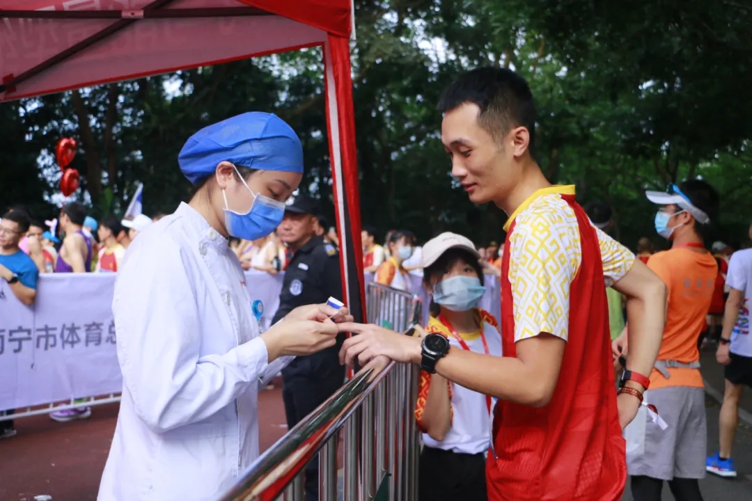 五月的南寧已是暑氣炎炎,為了全面保障本次賽事的順利進(jìn)行,組委策劃布置了全方位的賽事保障。有超過(guò)400名志愿者在賽道內外為比賽提供充足的后勤保障服務(wù)。賽道設置7個(gè)補給站,為選手提供豐富的賽道補給;設置8個(gè)醫療救護站、4輛120急救車(chē)、27名醫療工作人員,沿線(xiàn)設置救援隊及AED醫療設備,悉心守護每一位選手。
