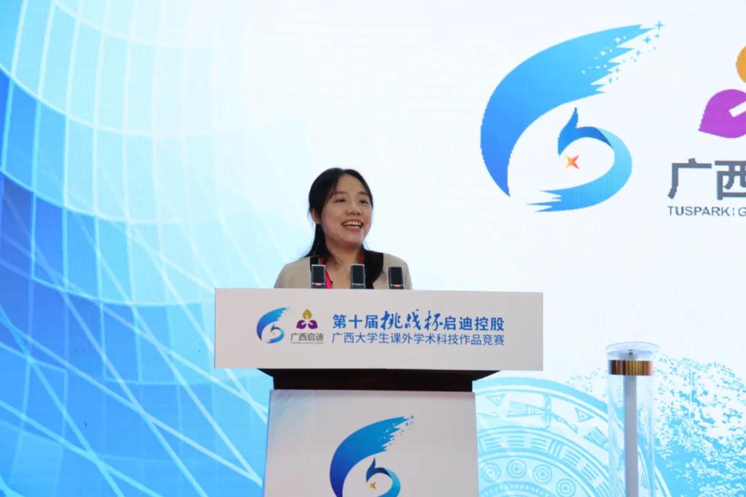 廣西中醫藥大學(xué)黨委書(shū)記尤劍鵬和參賽學(xué)生代表邱芊芊分別作了發(fā)言。最后,左向蕾副書(shū)記宣布第十屆“挑戰杯”啟迪控股廣西大學(xué)生課外學(xué)術(shù)科技作品競賽終審決賽正式開(kāi)幕。